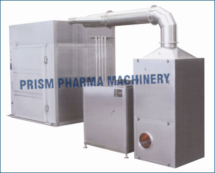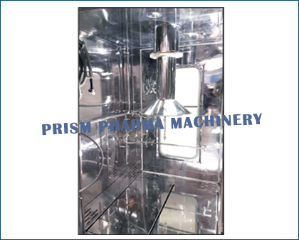 Bin wash automatically as per sets cycles. There are nos. of spraying nozzles for washing at all corners & all side walls for outer washing. Top mounting spraying nozzle is fitted with telescopic pneumatic cylinder to wash inner surface of the bin, Inner washing nozzle move upward & downward during washing for completely washing of bin. The cabinet is having drain pot with recirculation of water connection with pump if required then it can be recalculated. After complete washing cycles then bin is dry by passed filter hot air circulation by air handling unit. After drying of Bin on set temperature then released for new batch safe storage.