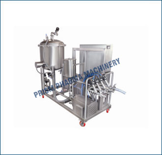 Trolley mounted CIP system have inlet connection with pneumatic operated valve for Plain water, Hot water, Detergent and D.M.Water with pressurized pump, which are connected with spraying ball with supply pipe on the machine. The complete CIP/WIP system is operated by PLC controls system with touch screen HMI. PLC controls system is working as per set time for washing cycle of the inlet & outlet as per requirements.